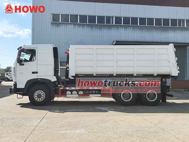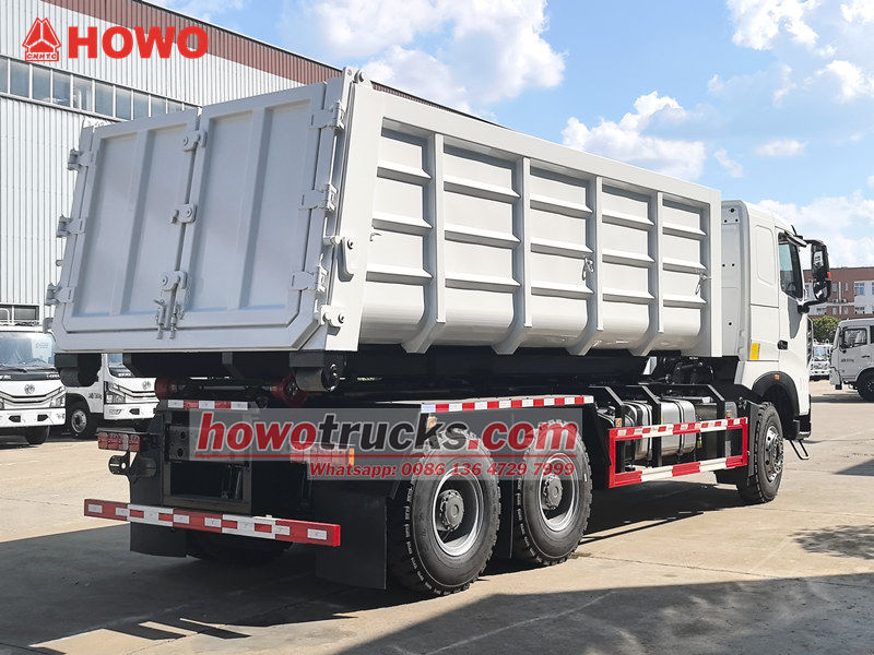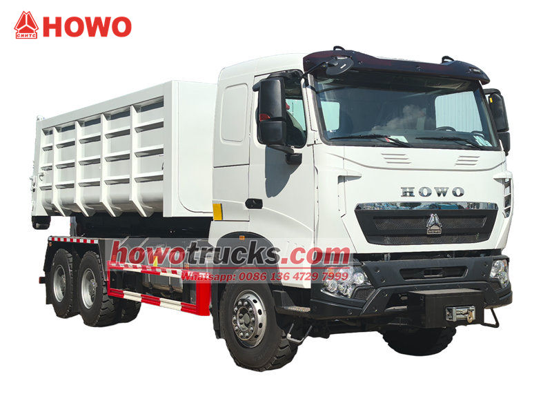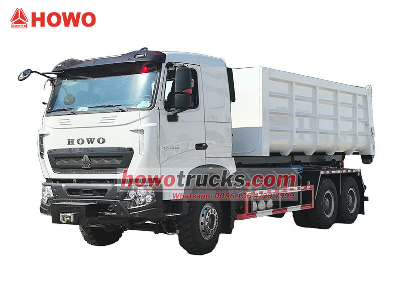 کامیون هوک لودر HOWO 20tons یک وسیله نقلیه بسیار کارآمد و قابل اعتماد است که برای مدیریت زباله های شهری و حومه شهری طراحی شده است. با فاصله محوری 4325+1350 میلی متر، موتور دیزل MC11.44-50 با قدرت 440 اسب بخار، میزان انتشار 10.518 لیتر. گیربکس HW19710، دنده 10 به جلو، دنده 2 به عقب، لاستیک های 12.00R20 با مجموع 11 عدد، دارای تهویه مطبوع، USB، کمک جهت، 3 صندلی. کالسکه و شاسی از ساختار جداگانه ای برخوردار هستند. از طریق دستگاه بازوی قلاب هیدرولیکی در عقب خودرو، می تواند به سرعت سطل های زباله استاندارد را متصل و حمل کند و حالت گردش "یک وسیله نقلیه، چندین سطل" را تحقق بخشد.
