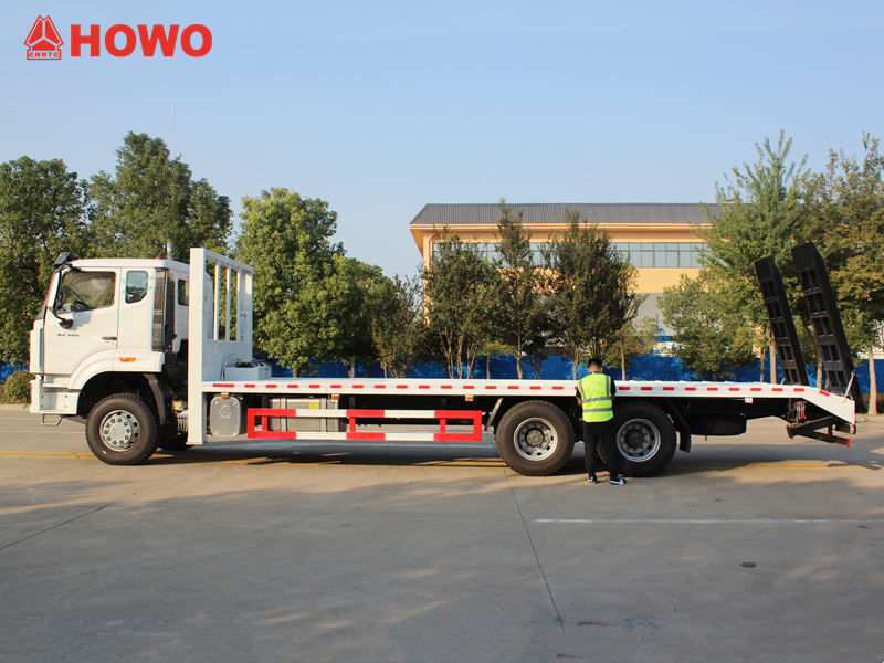 کامیون خودباربر کفی Howo 6x4 دارای طراحی کم‌ارتفاع با سکوی بارگیری جادار در ارتفاع مناسب است که به طور مؤثر شیب‌های بارگیری و تخلیه را کاهش داده و بارگیری و تخلیه ماشین‌آلات ساختمانی و تجهیزات بزرگ را تسهیل می‌کند. شاسی محکم و ظرفیت تحمل بار قوی این وسیله نقلیه به راحتی نیازهای حمل و نقل ماشین‌آلات سنگین مانند بیل مکانیکی، بولدوزر و غلتک جاده‌ای را برآورده می‌کند. علاوه بر این، جنس کفی تقویت شده و با مواد ضد لغزش پوشش داده شده است که هم قدرت تحمل بار و هم پایداری و ایمنی را در حین حمل و نقل افزایش می‌دهد.