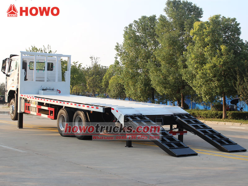 نردبان هیدرولیکی این خودرو، بارگیری و تخلیه را راحت و ایمن می‌کند و راندمان عملیاتی را بهبود می‌بخشد. کامیون خودباربر کفی سنگین HOWO 6x4 نه تنها برای سایت‌های ساختمانی، عملیات استخراج معادن و حمل و نقل تجهیزات در مقیاس بزرگ مناسب است، بلکه دارای عملکرد پایدار، سازگاری قوی و سهولت استفاده نیز می‌باشد که آن را به ابزاری حیاتی برای حمل و نقل در ساخت و ساز و انتقال تجهیزات تبدیل می‌کند.