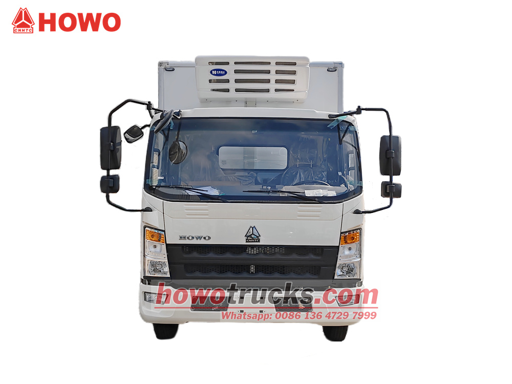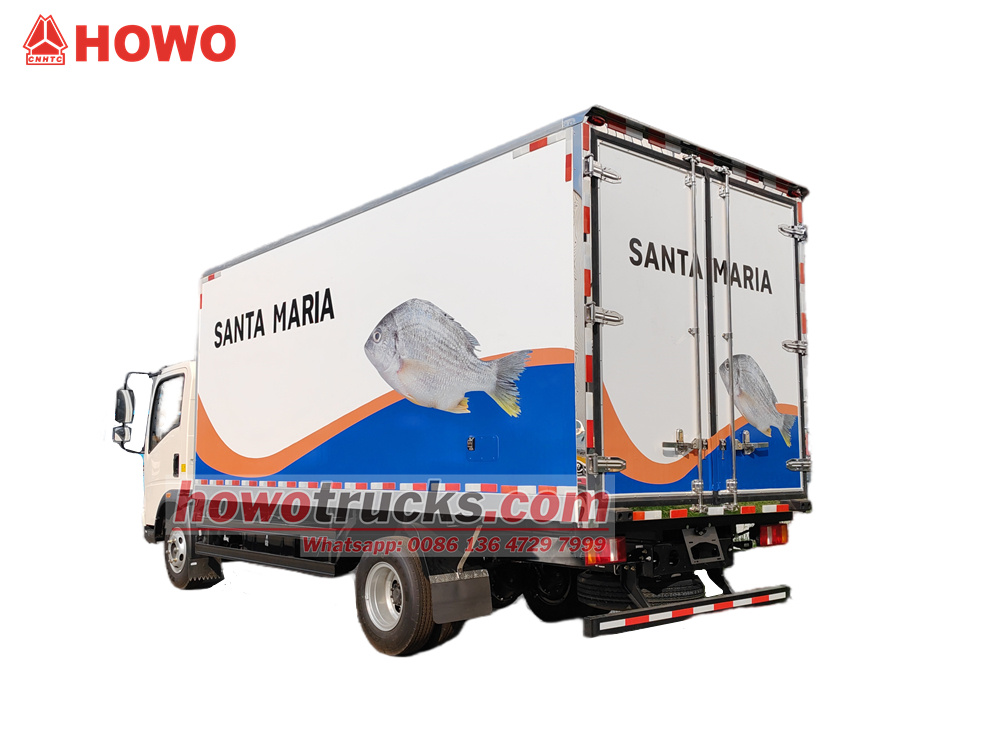 کامیون یخچالدار HOWO 4x2 از شاسی کامیونهای سبک HOWO با فاصله بین دو محور 3360 میلیمتر بهره میبرد. مجهز به موتور Cummins ISF3.8s4R154 با قدرت 154 اسب بخار و گیربکس 6 سرعته WLY6TS55 است. محفظه یخچال بالایی 4200 فوت مکعب حجم دارد.×۲۲۰۰×2050 میلیمتر و از جنس فایبرگلاس، فوم FRP + PU + مواد پنل FRP 105 میلیمتری، ساندویچ پنل کاملاً محصور، درب سمت راست، درب عقب دوتایی سایز کامل، کف ضد لغزش و مقاوم در برابر سایش ساخته شده است و از واحد تبرید HX-580 استفاده میکند. این جعبه میتواند 5 تن بار را حمل کند و عمدتاً برای حمل و نقل زنجیره سرد غذاهای دریایی استفاده میشود.