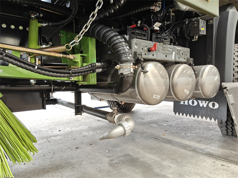 ◊ پمپ فشار پایین: پمپ آب کم فشار 60/90 هانگژو ویلونگ با دبی 60 متر مکعب در ساعت. نازلهای بادبزنی شکل اضافی در جلوی برسها برای سرکوب گرد و غبار ناشی از پاشش قرار گرفتهاند و از آلودگی ثانویه گرد و غبار در حین کار جلوگیری میکنند.
