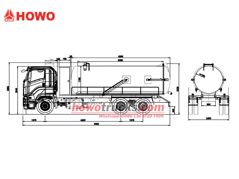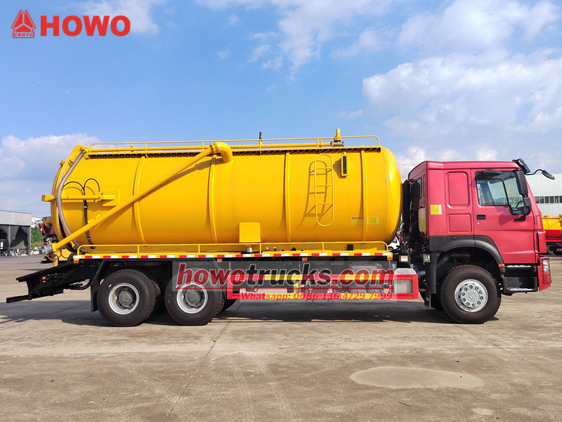 جاروبرقی فاضلاب HOWO بر روی شاسی SINOTRUK HOWO 6×4 ساخته شده است و دارای یک مخزن فولاد کربنی 20 متر مکعبی متصل به یک پمپ خلاء ایتالیایی Jurop است که قادر به تولید سطح خلاء بالای 93٪ است. این وسیله نقلیه با موتور Weichai 400 اسب بخار و گیربکس 10 سرعته، مجهز به یک پوشش عقب هیدرولیکی قفل شده، سیستم هشدار ضد سرریز و یک شلنگ مکش 10 متری است. این وسیله به طور خاص برای عملیات حمل و نقل زباله در مقیاس بزرگ در کانال های رودخانه و شبکه های لوله کشی شهری طراحی شده است.
