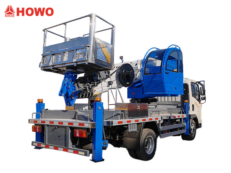 این وسیله نقلیه با حداکثر ارتفاع کاری ۲۸ متر، دارای یک بوم تلسکوپی هماهنگ پنج قسمتی و چهار پایه هیدرولیکی V شکل است که طول پایه ۴۲۰۰ میلیمتر را برای پایداری برتر در حین کار فراهم میکند. پلتفرم فولاد ضد زنگ دارای ظرفیت بار ۲۰۰ کیلوگرم است، از چرخش مداوم ۳۶۰ درجه پشتیبانی میکند و امکان عملکرد در دو جهت را فراهم میکند. این وسیله به سه سیستم کنترل (زمین، سکو و ریموت بیسیم) و دستگاههای ایمنی اضطراری مجهز است. این وسیله به دلیل راندمان بالا و عملکرد انعطافپذیرش شناخته شده است. کامیون بالابر HOWO به طور گسترده در تعمیر و نگهداری شهری، بازرسی خطوط برق، نصب تبلیغات و سایر عملیات در ارتفاع بالا استفاده میشود و ایمنی را با تطبیقپذیری ترکیب میکند.