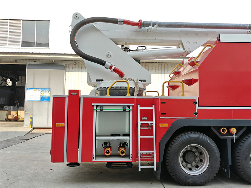 قسمت گردان مجهز به یک مفصل گردان مرکزی است که میتواند به زاویه گردانی بینهایت ۳۶۰ درجه دست یابد. Hکامیون آتش نشانی owo با برجک قابل توسعه با برد بالا، دارای پمپ آتش نشانی با جریان بزرگ و توپ آتش نشانی است. مخزن آب و آبراهه همگی از فولاد ضد زنگ با کیفیت بالا و لوله های آلیاژ آلومینیوم با مقاومت بالا ساخته شده اند. سیستم هیدرولیک از یک پمپ با کارایی بالا و یک حالت کنترل متناسب با مایع الکتریکی استفاده می کند. سیستم الکتریکی از یک فناوری ارتباطی باس CAN کنترلر بالغ و قابل اعتماد و عملکرد متمرکز چند نقطه ای بهره می برد.