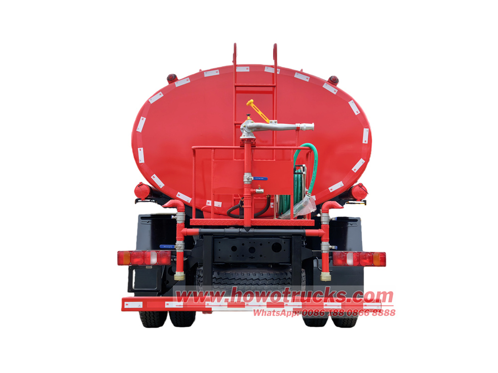 11500The Howo 4x2 drive water delivery tanker bowser uses a Sinotruk NX series chassis and is specifically developed for the right-hand drive market. The vehicle is equipped with a Sinotruk high-efficiency powertrain and a 12-cubic-meter large-capacity carbon steel tank, a high-flow water pump, and features front spray, rear side spray, high-pressure water gun, and hose reel. It can be used for road washing, dust suppression, garden irrigation, and emergency firefighting.