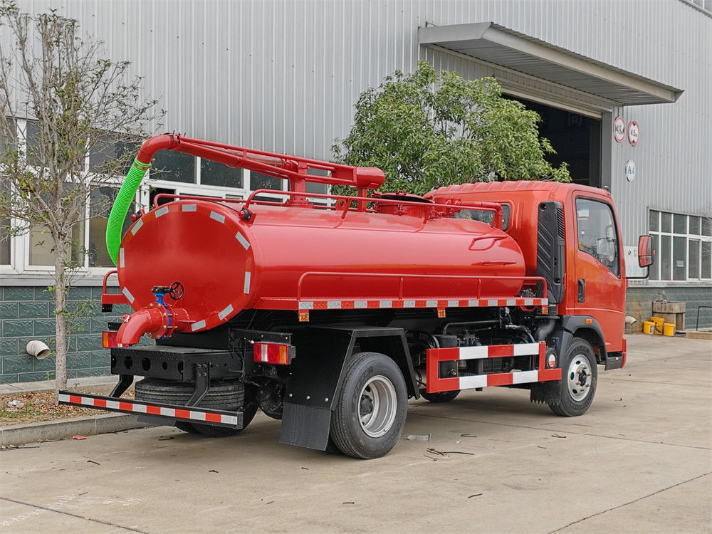 کامیون مکش سپتیک تانک HOWO 4x4 RHD با ظرفیت 4cbm، کابین تک ردیفه HOWO Hanjiang 1880، سیستم چهار چرخ محرک 4x4، فرمان راست، فاصله بین دو محور 3360 میلیمتر، مجهز به موتور YN4102QBZL با قدرت 116 اسب بخار، گیربکس 6 سرعته WLY6TS40، بدنه بالایی یک سپتیک تانک 4 متر مکعبی، جنس فولاد کربنی، پوشش ضد خوردگی و زنگزدگی، مجهز به پمپ خلاء حلقه آب Yifeng SK-6، حداکثر سرعت پمپاژ: 6 متر مکعب در دقیقه، سرعت: 970 دور در دقیقه، بوم مکش سپتیک تانک 6 متری بالایی، مجهز به پنجره مشاهده سپتیک تانک، شیر سرریز، فشارسنج، شیر اگزوز و غیره را به کار میگیرد.