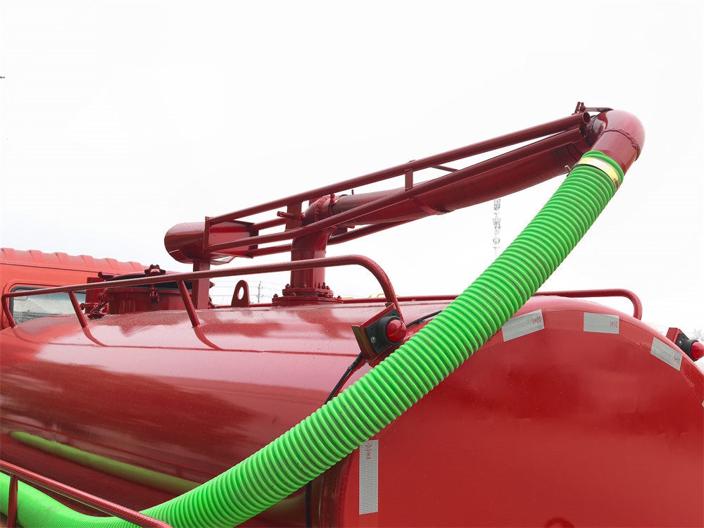 • مخزن: مخزن فولاد کربنی ۴ متر مکعبی، ≥ ضخامت ۴ میلیمتر، با پوشش ضد خوردگی و مقاوم در برابر زنگزدگی برای افزایش طول عمر مفید. یک بازوی مکش جمعشونده ۶ متری در بالا نصب شده است که امکان کار در زوایای مختلف را فراهم میکند. یک شیر تخلیه در عقب نصب شده است که امکان تخلیه با نیروی جاذبه یا هوای فشرده را فراهم میکند.