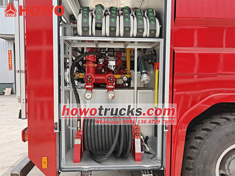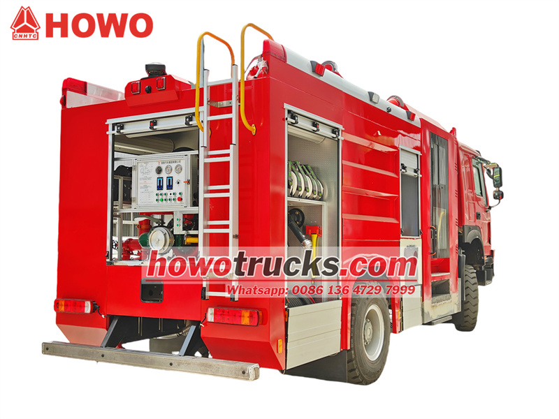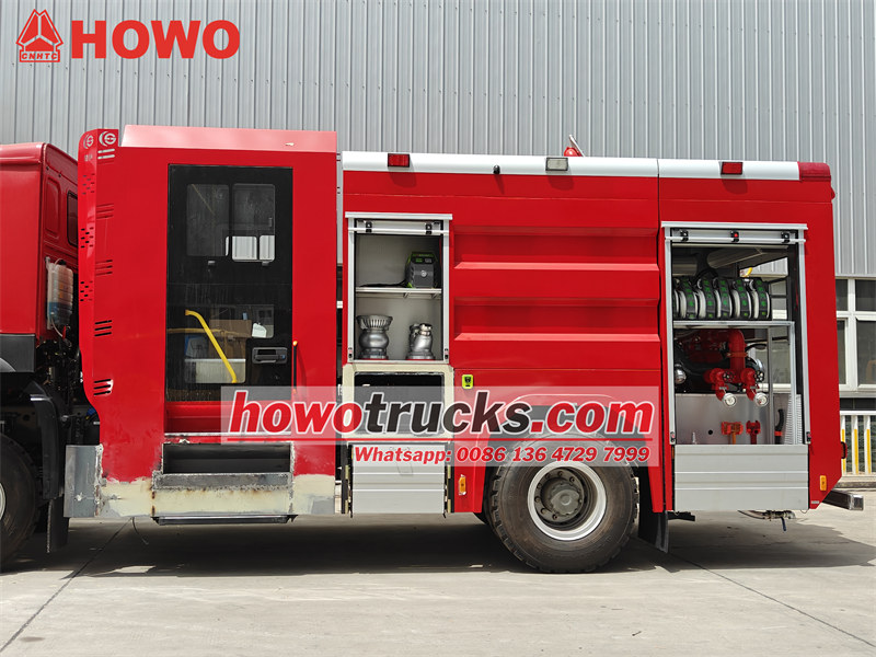 7000کامیون آتش نشانی تانکر فوم سینوتروک HOWO یک وسیله نقلیه آتش نشانی پمپ دار صنعتی حرفه ای است که می توان آن را به عنوان کامیون پمپ دار آتش نشانی، کامیون آتش نشانی، دستگاه آتش نشانی، کامیون خدمات آتش نشانی، کامیون آتش نشانی پمپ دار نیز نامید. کامیون آتش نشانی تانکر پمپ دار HOWO بر اساس شاسی کامیون سنگین آفرود HOWO 4x4، کابین دو ردیفه سفارشی، با صندلی های جلو با سیستم تعلیق بادی راحت و عقب مجهز به 4 ست صندلی SCBA برای نگهداری دستگاه هوا و استفاده راحت طراحی و تولید شده است. این کامیون با ادغام عامل آب و فوم و ابزارهای متعدد تجهیزات نجات آتش نشانی، عمدتاً برای اطفاء حریق و ماموریت نجات افراد استفاده می شود. مجهز به مخزن آب 4000 لیتری و مخزن فوم 1000 لیتری، همگی از جنس استیل ضد زنگ، به طور موثر برای صحنه های آتش سوزی پیچیده خدمات ارائه می دهد تا از گسترش آتش جلوگیری کرده و تلفات در هنگام آتش سوزی را کاهش دهد.