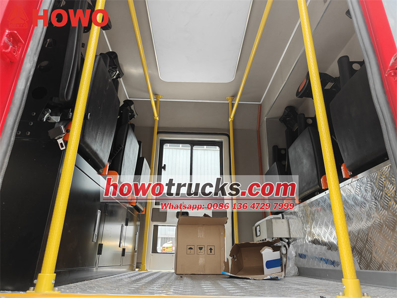 تمام بدنه تانکر آتش نشانی با صندلی های قوی تر و قابل اعتماد، راحت و بادوام به شاسی کامیون HOWO متصل می شوند