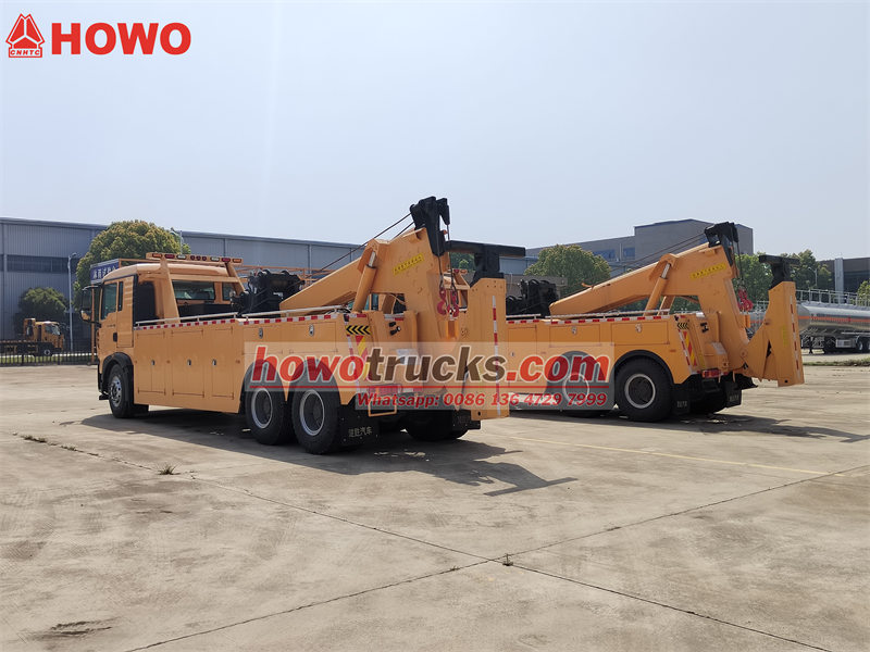 کامیون یدککش Howo 6x4 مجهز به سیستم مهار هیدرولیکی قوی (با قابلیت بلند کردن ۱۲.۵ تن بار در هر مهار) است که با ارائه یک محدوده پشتیبانی وسیع، ایمنی و پایداری را در عملیات نجات سنگین تضمین میکند. کابین لوکس زرد رنگ یک ردیفه و نیم خوابه (رنگهای دیگر نیز موجود است)، مخزن سوخت با ظرفیت بالای ۴۰۰ لیتر، سیستم الکتریکی ۲۴ ولت، چراغهای هشدار کامل (چراغهای هشدار، چراغهای چشمکزن) و جعبه ابزار و سایر لوازم جانبی، آن را به یک تجهیزات یدککشی و نجات حرفهای در مقیاس بزرگ با عملکردهای جامع و عملکرد قدرتمند تبدیل کرده است.