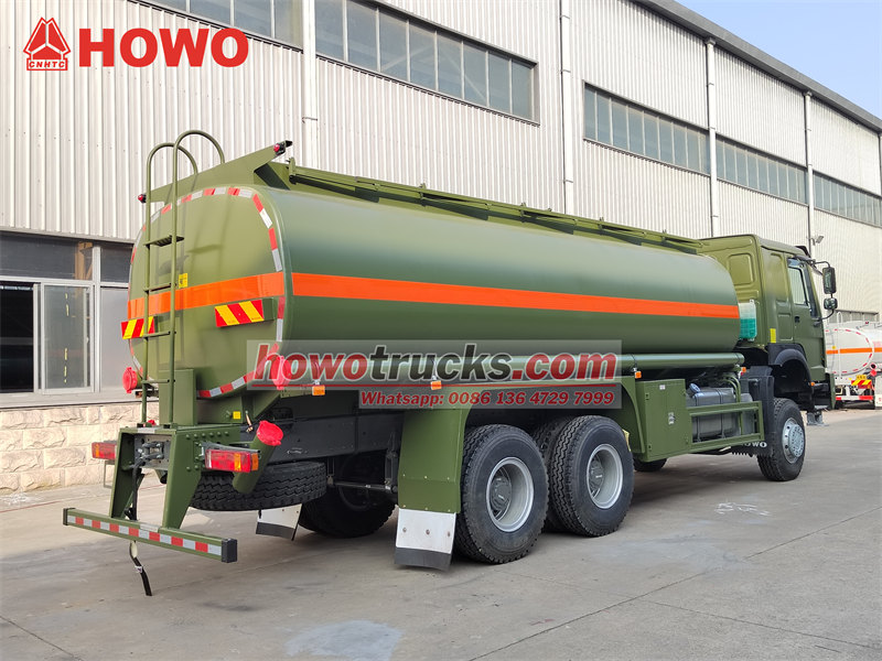 کامیون مخزن سوخت HOWO 6×6 بر اساس شاسی چهار چرخ محرک SINOTRUK HOWO 6×6 طراحی شده است، ظرفیت تانکر سوخت تا 18000 لیتر است، از فولاد کربنی با کیفیت بالا ساخته شده و دارای پوشش ضد خوردگی داخلی برای افزایش طول عمر آن است. مخزن به دو محفظه تقسیم شده است که امکان ذخیره و حمل انواع مختلف فرآوردههای نفتی را فراهم میکند. این وسیله نقلیه با عملکرد عالی در خارج از جاده، میتواند با شرایط سخت جادهای مانند گل و لای و شن سازگار شود.