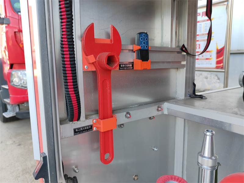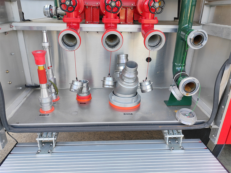 ۳. جعبه تجهیزات پایینی: این محفظه که در زیر مخزن قرار دارد، از فضای زیادی استفاده میکند. دارای یک درب کرکرهای از جنس آلیاژ آلومینیوم است که به راحتی باز میشود و ضد آب و گرد و غبار است. تجهیزات مختلف آتشنشانی در آن قرار دارد: