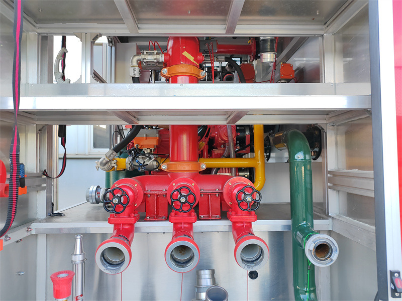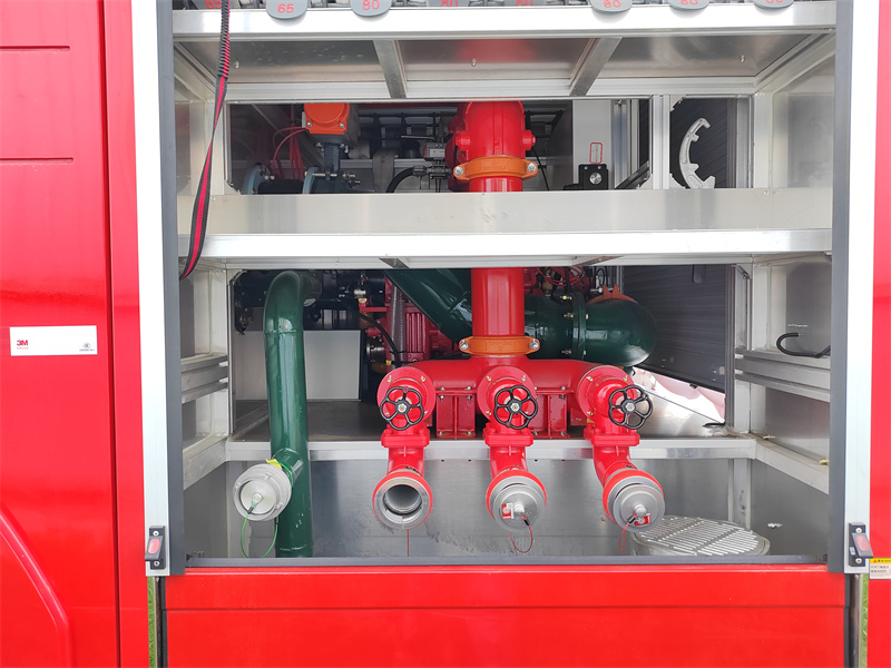 ۴. اتاق پمپ عقب: "قلب" ماشین آتش نشانی را در خود جای داده است—سیستم پمپ آتش نشانی CB10/100-XZ.