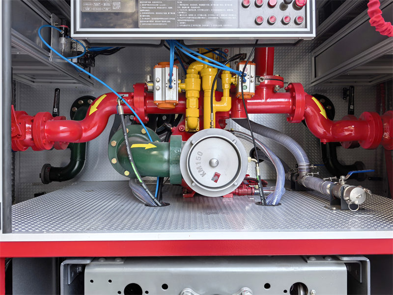 سیستم مخزن: قسمت جلویی اتاق تجهیزات است که در آن تجهیزات مختلف آتش نشانی (مانند شیلنگ آتش نشانی، کپسول آتش نشانی، تبر آتش نشانی، آچار، چکش، کلنگ و غیره) برای دسترسی آسان نگهداری می شوند. در وسط، یک مخزن آب از جنس فولاد کربنی 6CBM و یک مخزن فوم 2CBM وجود دارد که هر دو مجهز به دریچه های آدم رو در بالا هستند.
