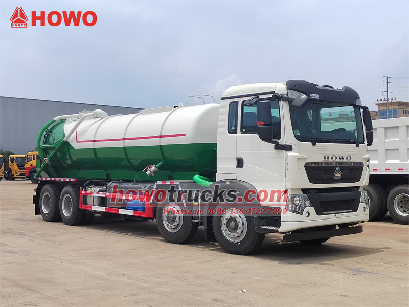 17500کامیون مخزن خلاء HOWO TX 25000L یک وسیله نقلیه بهداشتی تخصصی است که برای مکش، حمل و دفع کارآمد زبالههای مایع و لجن طراحی شده است. این وسیله نقلیه که بر روی شاسی سنگین HOWO TX 8×4 ساخته شده است، از یک موتور 350 اسب بخاری و یک گیربکس 10 سرعته HW19710 بهره میبرد که توسط یک مخزن سوخت بزرگ 400 لیتری پشتیبانی میشود. روبنا شامل یک مخزن خلاء 25 متر مکعبی ساخته شده از فولاد کربنی با کیفیت بالا 6 میلیمتری است که با یک پمپ خلاء حلقه آبی SK-20 ادغام شده است که قادر به دستیابی به حداکثر سرعت مکش 20 متر مکعب در دقیقه و سطح خلاء نهایی 8300 پاسکال است و مکش قدرتمند و مقاومت در برابر خوردگی را تضمین میکند.